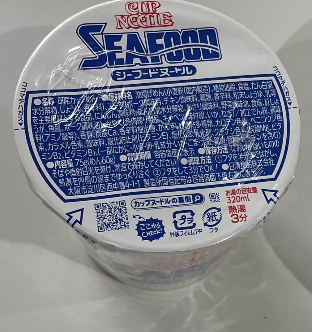 마지막으로 먹어볼 라면은 컵누들 시푸드라면입니다. 역시 닛신에서 만든 라면인데 세 라면 중에서는 크기도 가장 작고 간단합니다.
