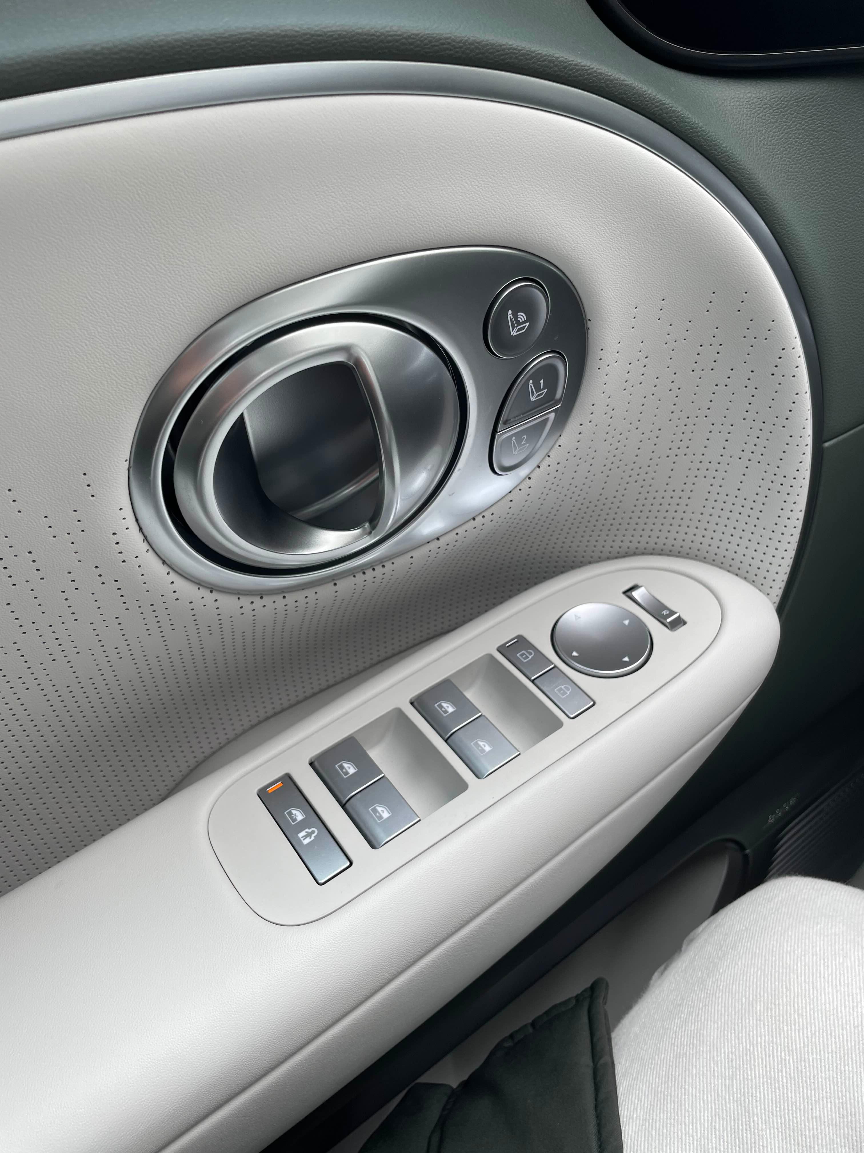 이건 운전석 문짝입니다. 위치를 기억하는 메모리와 함께 안마기능이 있습니다. 사실 안마는 아니고 허리의 압력을 분산해주는 거라고 하는데 틀어보니 허리와 엉덩이를 꾹꾹 눌러줍니다. 있으면 좋겠지만 사실 별 필요는 없어보입니다. 졸릴때 이런거 켠다고 잠이 달아날까 싶습니다. 피로를 줄이려는 목적이겠지만 저는 원래 장거리를 운전해도 피로해지지 않습니다.
