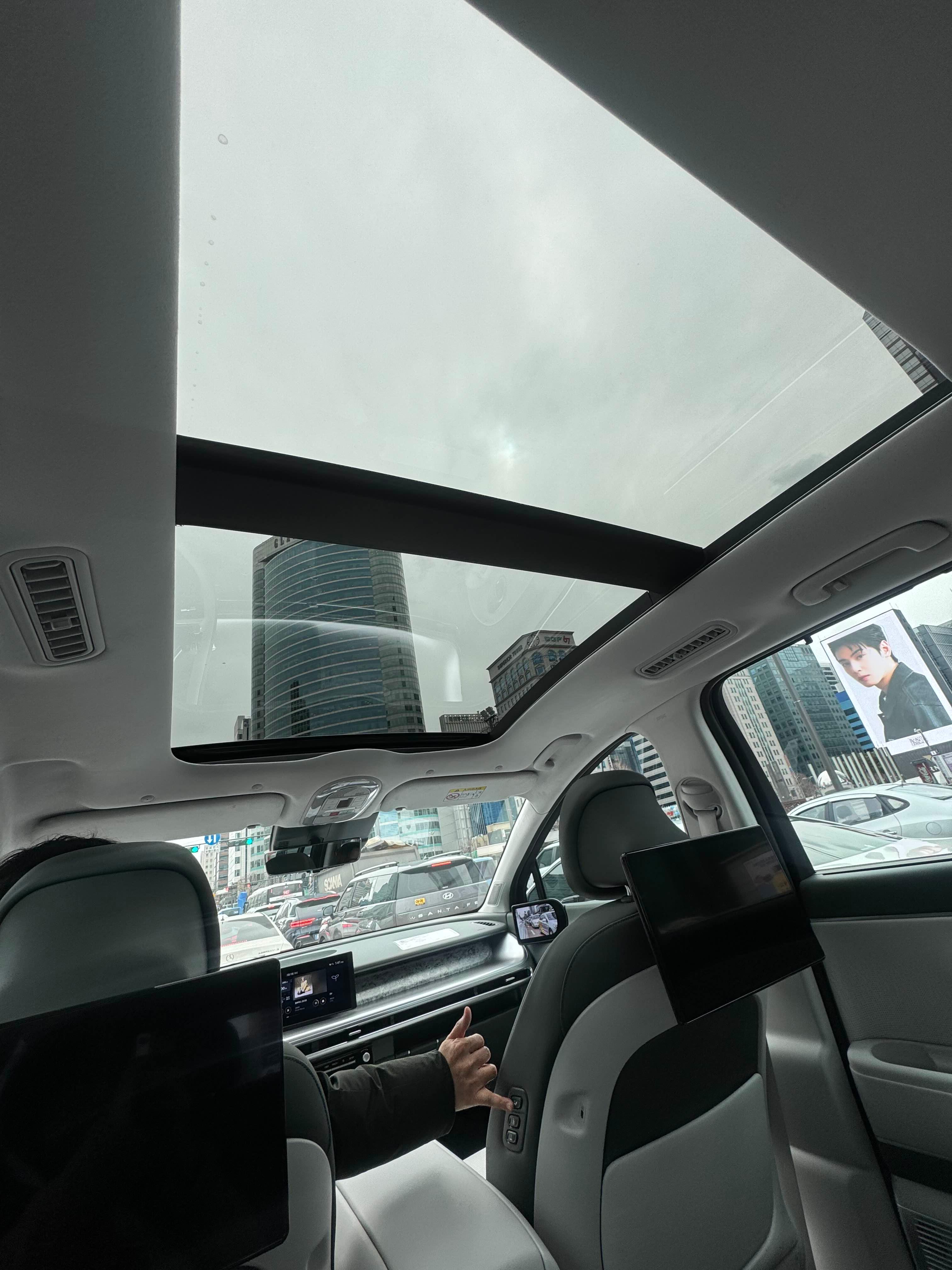 파노라마 선루프도 장착되어있었는데 아이오닉5에 있는 비전루프와 같은 개방감일 줄 알았는데 중간에 검은색 가로대가 하나 있는 것을 보고 팍식었습니다. 하지만 저는 있는 걸 계약했죠. 파노라마선루프가 있으니 확실히 개방감이 엄청납니다. 이건 제가 그동안 선루프가 없었던 차를 타고 다녀서 그렇게 느낀 것을 수 있습니다. 살아보세요라는 캐치프라이즈 처럼 이번에서 차에서 한번 살아보겠다는 생각으로 파노라마 선루프를 넣었습니다. 기회가 된다면 안반데기 같은 곳에 가서 선루프를 통해 별을 볼 수 있었으면 좋겠습니다.