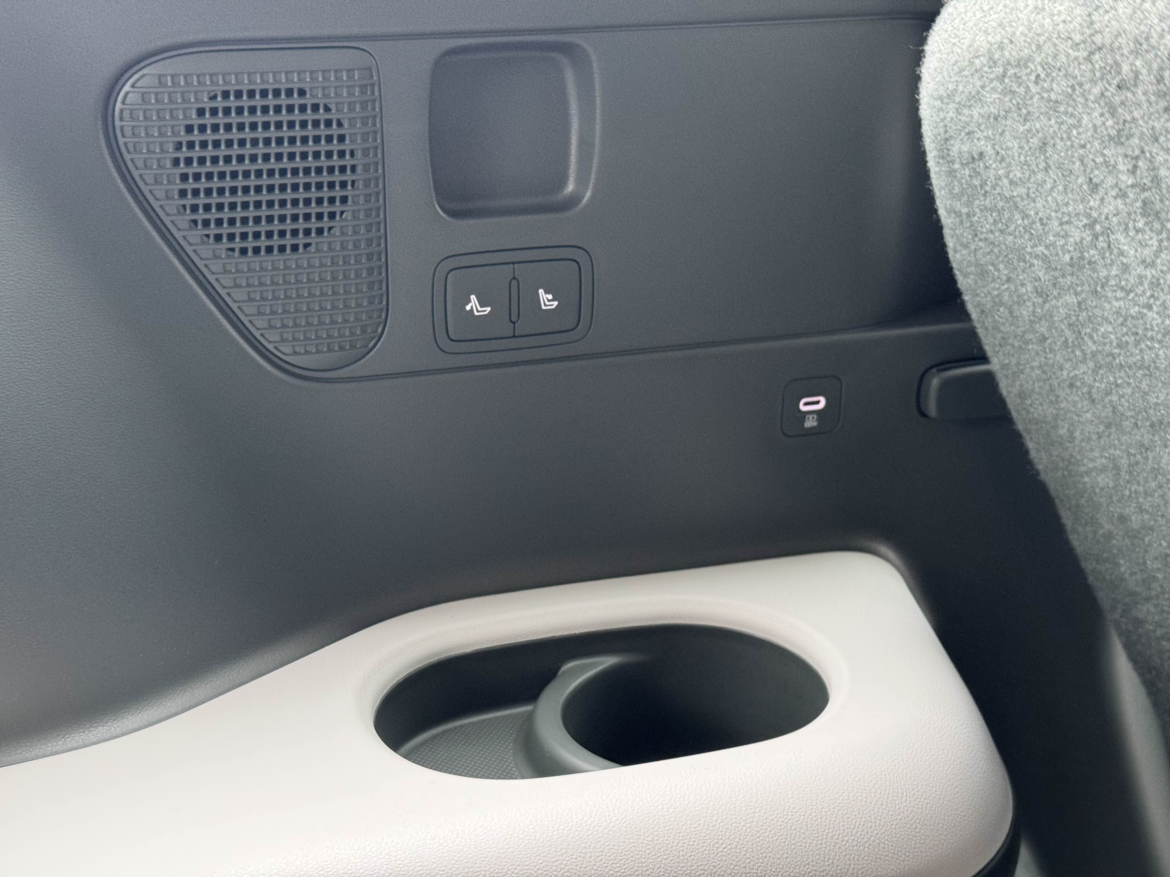 뒷좌석에서 안마모드를 켜보았는데 애교 수준의 안마입니다. 저는 이 옵션은 뺐습니다. 직접 타보니 빼길 잘했다고 생각했습니다. 뒷열 문에는 햇빛을 가릴 수 있는 가림막이 있고 손잡이에 컵홀더가 있습니다. 유용하게 쓸 수 있을 거 같습니다.