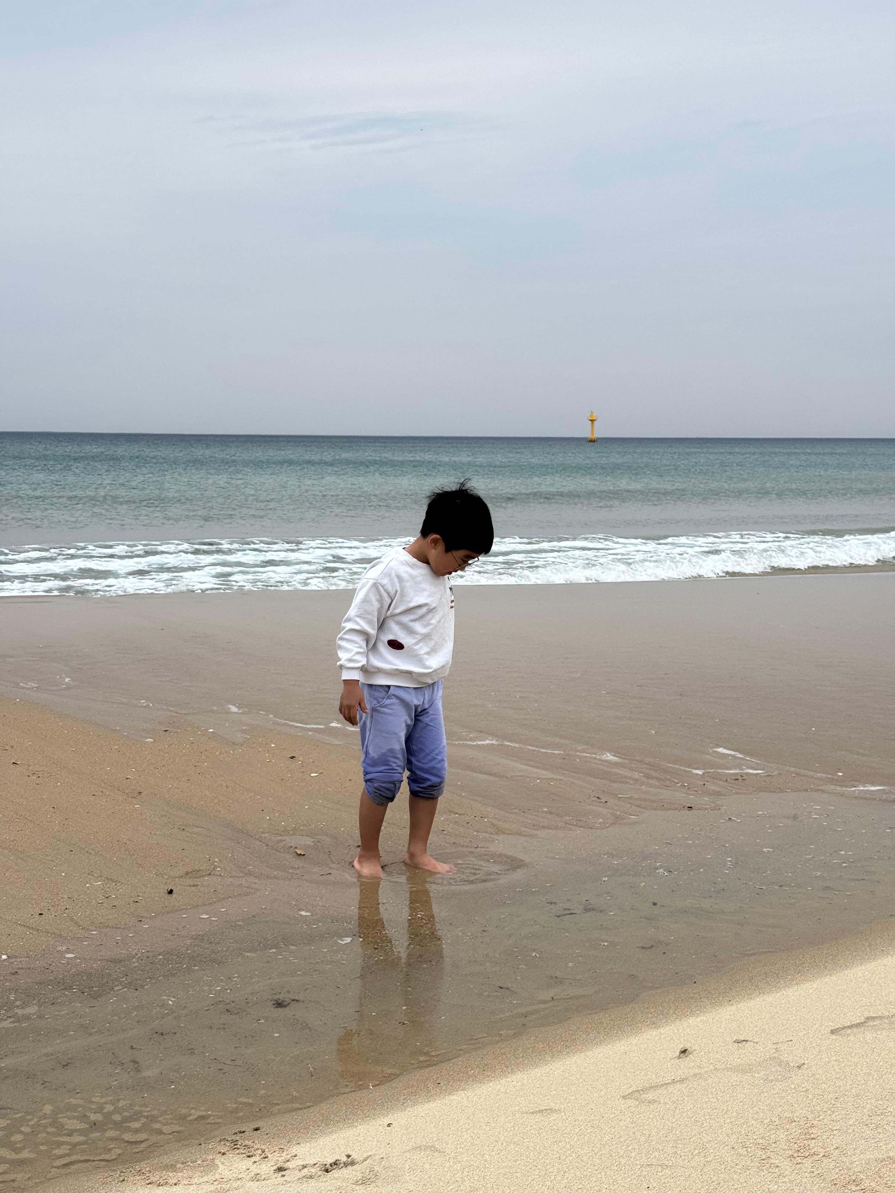 해변은 해수욕장이기 때문에 많은 사람들이 다니지만 캠핑장이 있다보니 주변에서 접근하기 용이하지 않기 때문에 조용합니다. 사람도 많이 없고 물도 깊지 않아 아이들이 놀기 좋습니다.