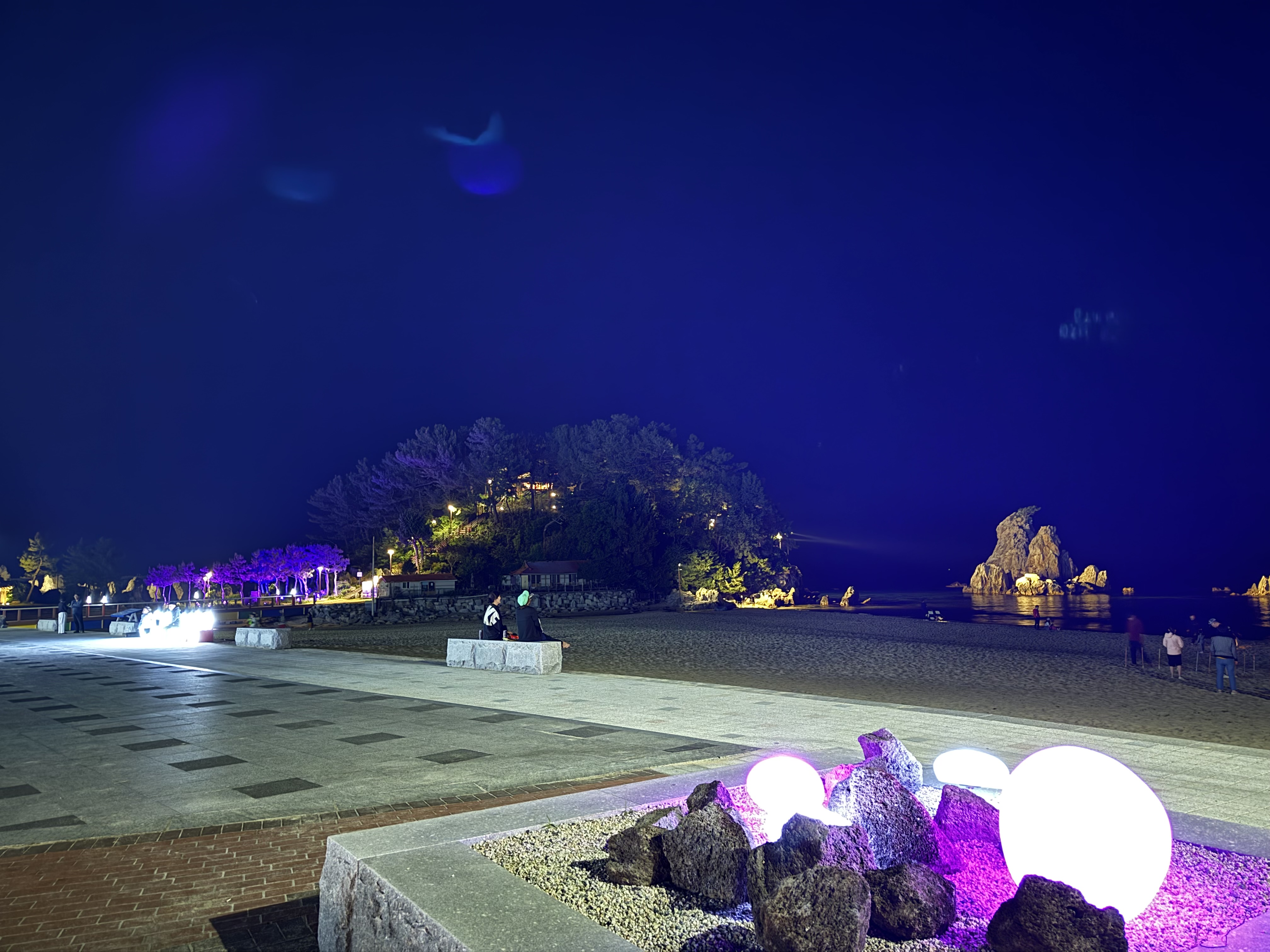밤에는 밤대로 좋습니다. 낮이고 밤이고 경치가 좋으니 하루종일 할 것이 있어서 좋습니다. 개인적으로는 낮보다 밤이 더 좋았습니다. 이런 해수욕장, 바닷가 근처 캠핑장은 여름에 오기 마련인데 여름에는 사실 낮에 돌아다니기 힘듭니다. 밤에는 선선하게 야경을 즐기면서 산책할 수 있습니다.