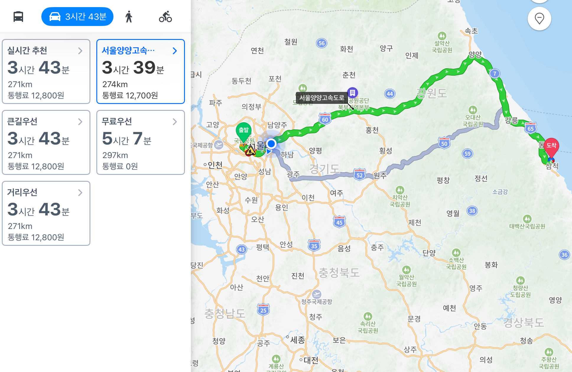 동해와 삼척의 경계에 있기 때문에 서울에서 가면 거리가 꽤 멉니다.