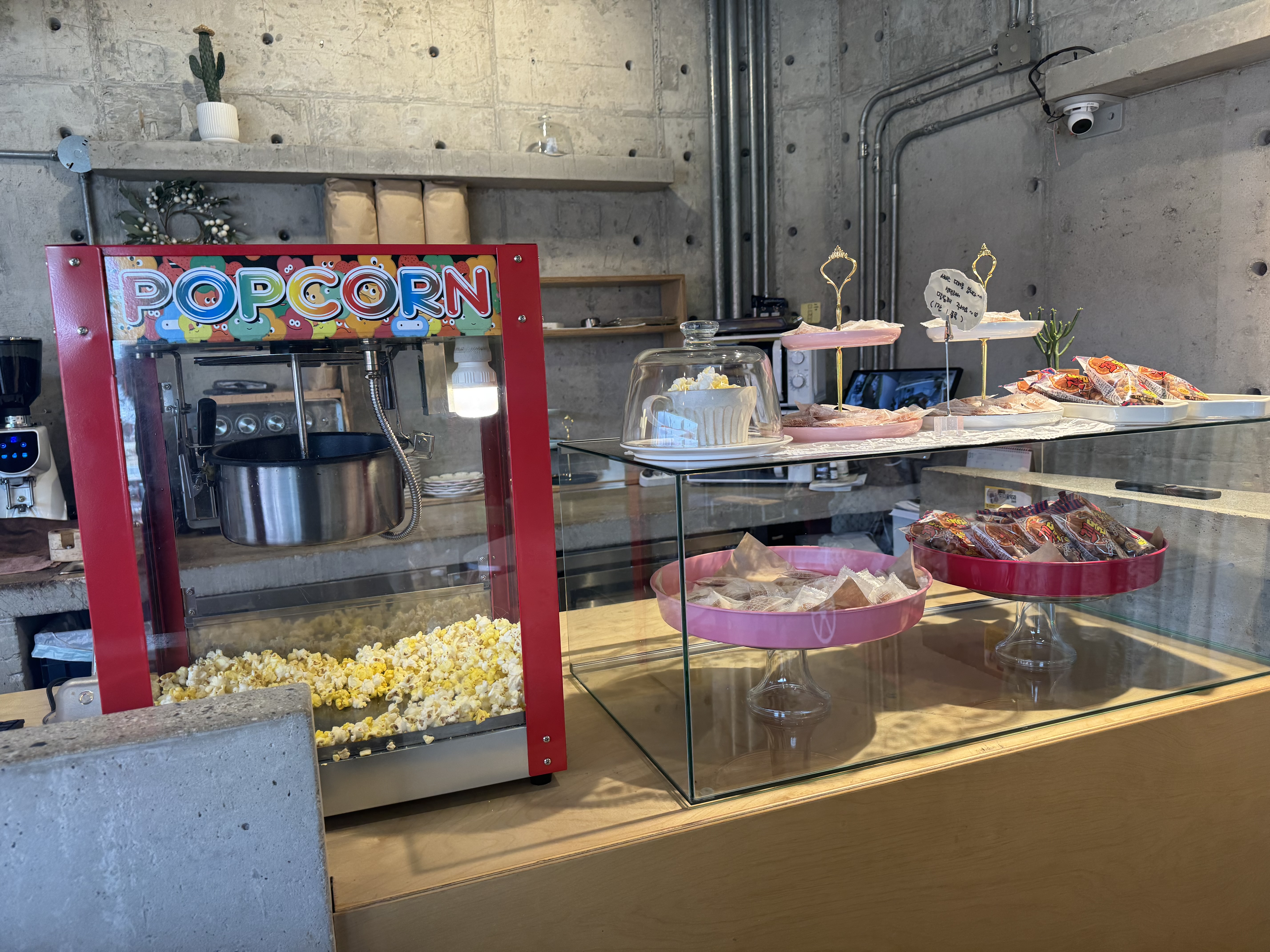 아메리카노 4,800원, 시그니처라떼 6,800원, 그린레몬에이드 6,300원. 메뉴판의 숫자는 그렇게 낯설지 않았지만, 음료와 함께 제공되는 서비스가 유독 눈에 띄었다. 음료 두 잔마다 팝콘 한 통, 음료 한 잔마다 꾀돌이 같은 과자를 준다는 점이었는데, 실제로 테이블에 놓인 팝콘 기계와 소량씩 담긴 간식이 아이들에게는 소확행이자 어른에게는 약간의 놀라움이었다.