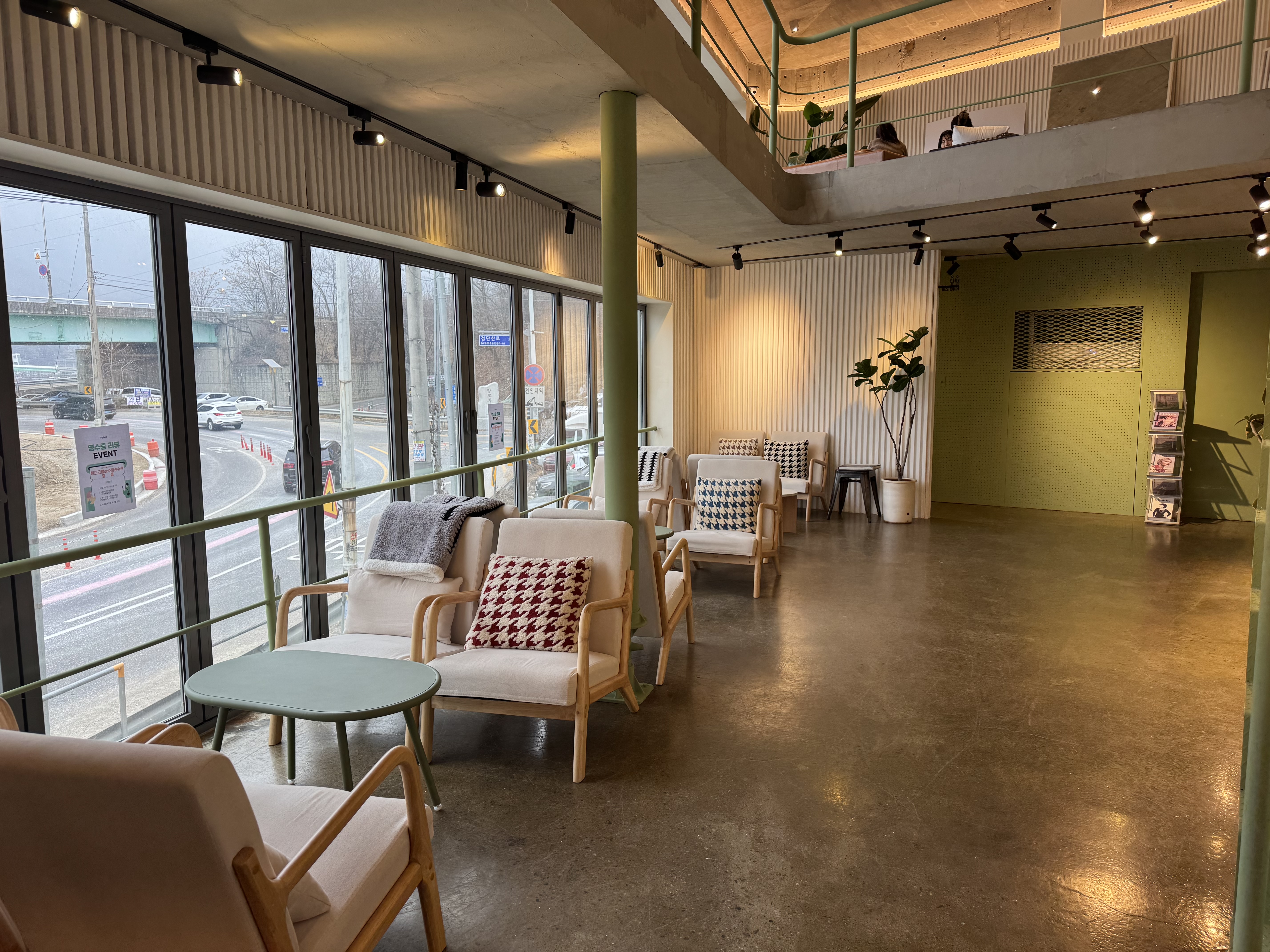 아이들이 돌아다닐 수 있는 작은 공간과 인형, 계단의 연두색 난간 같은 시각적 요소들이 있어 아이들이 지루해하지 않았다. 실제로 내 아이들도 여기저기 둘러보며 즐거워했는데, 과자 서비스가 가족 동선에서 꽤 긍정적 효과를 냈다. 다만 3층 구조에 계단이 있어 아기 유모차를 동반한다면 동선 확인이 필요하다.